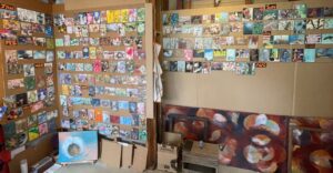 - Size of image: I took the issue of having to decide on the size of the artwork out of the daily decision-making process. All the images are postcard size inspired by a series of old family postcards.